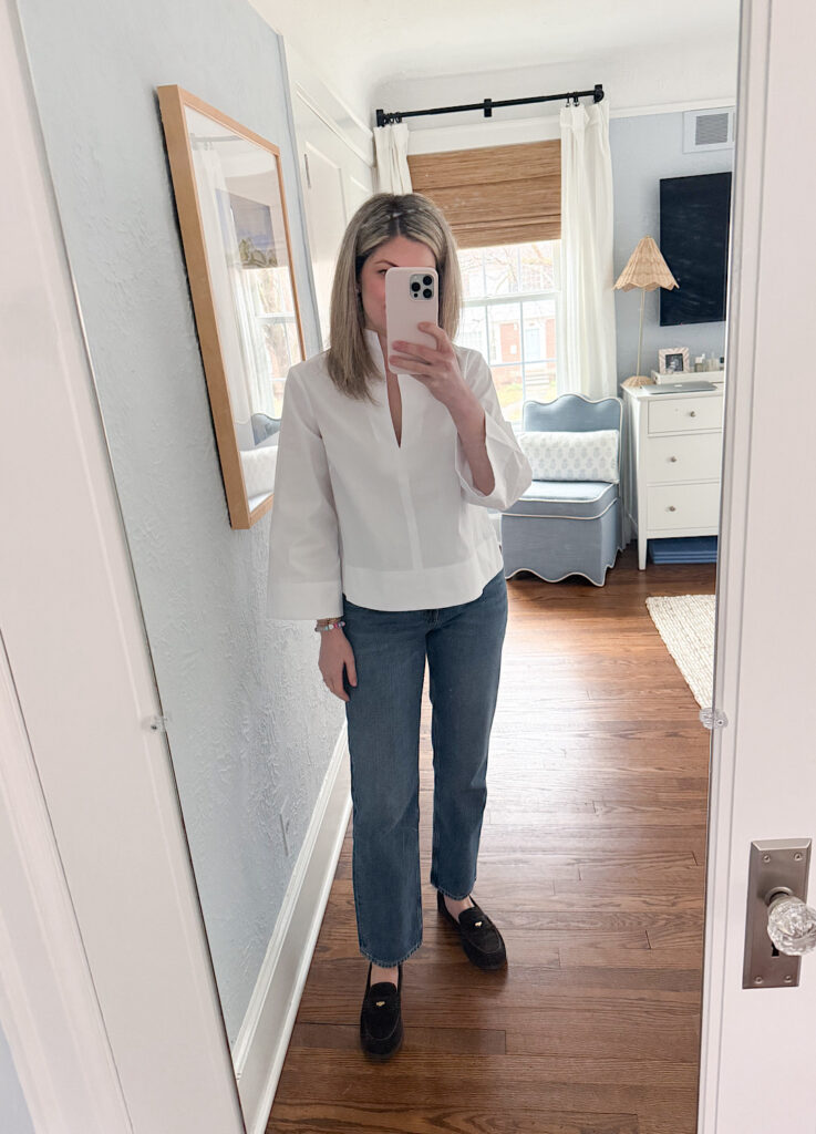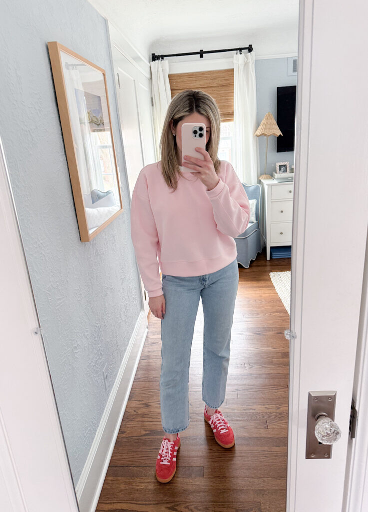 Outfit linked here– I love this more polished sweatshirt. The neck is so cute on it! These are really hard to get so when you see one- order fast.