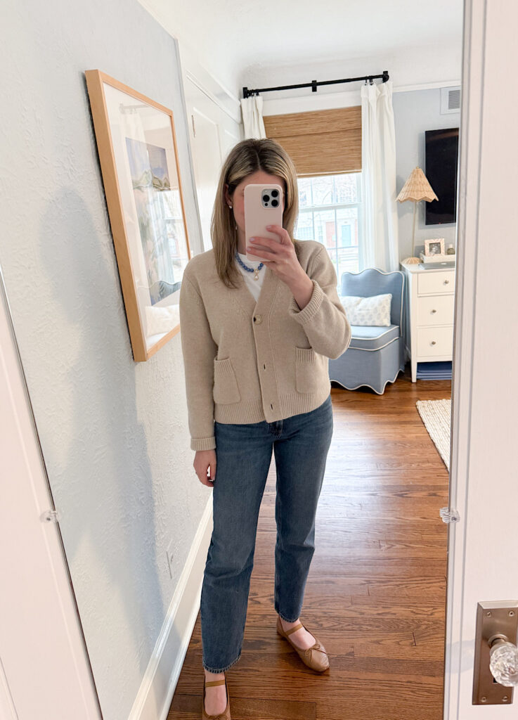 Outfit linked here– this cardigan is truly a forever piece in my wardrobe. It is incredibly soft and while yes, it’s expensive. I’ve already gotten my money’s worth with how much I wear it. I am also trying to be more intentional with jewelry and accessories. How cute is this necklace?