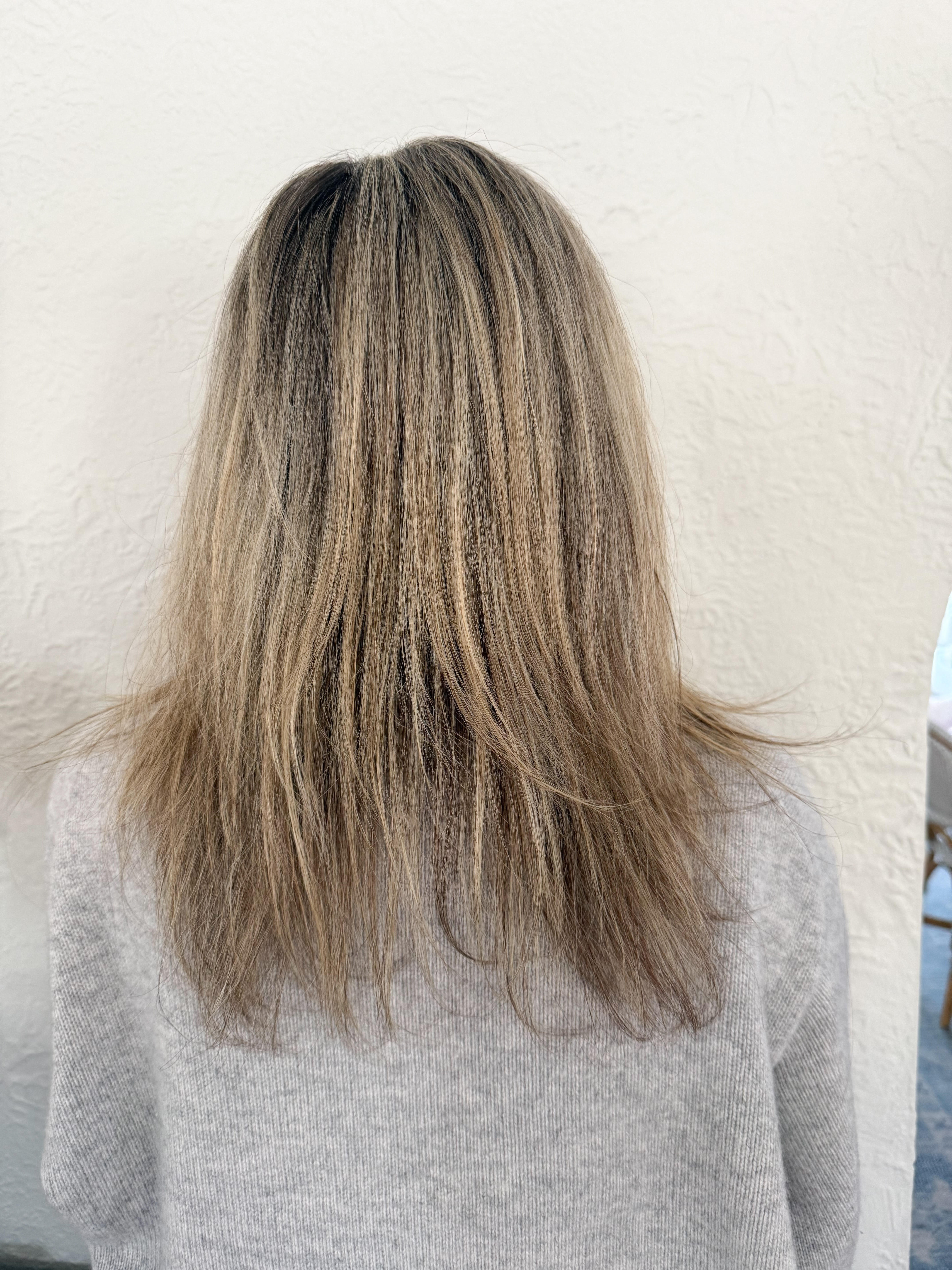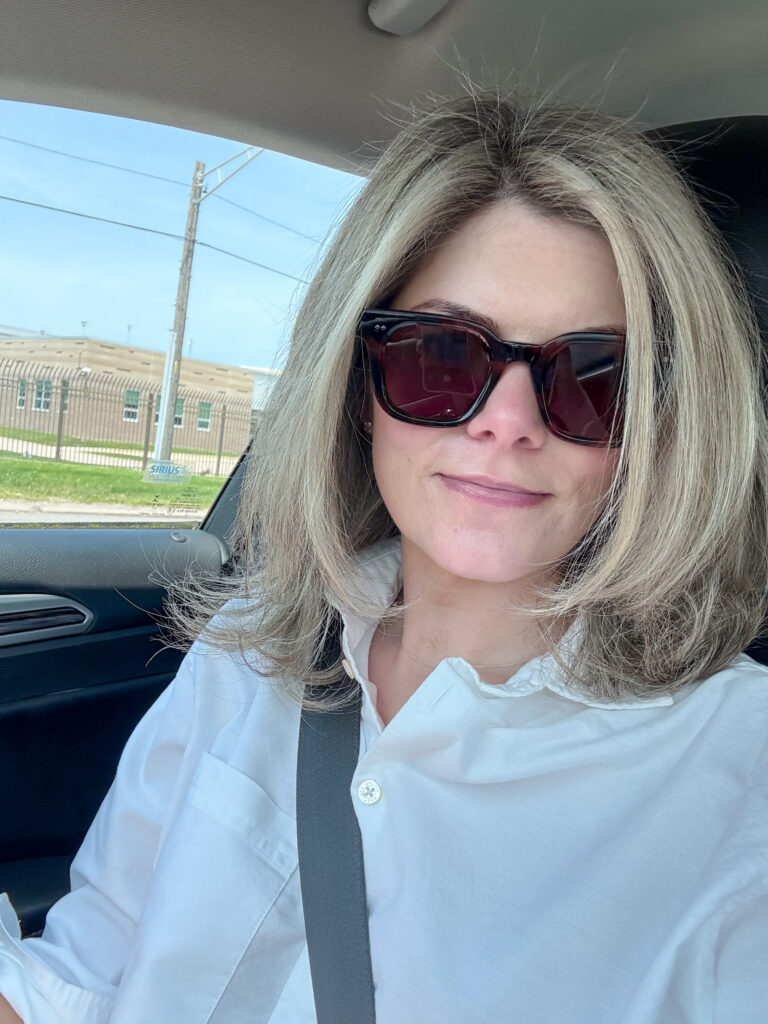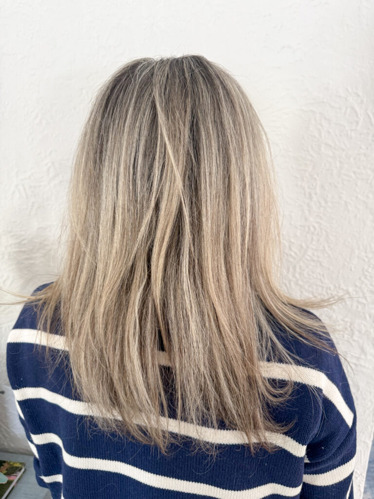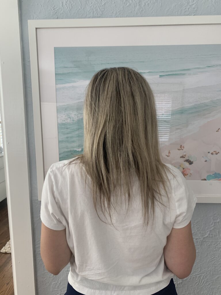 September 2024- I went and saw my stylist and chopped my hair off and went darker. It’s kind of hard to tell in this photo because I still kept a lot of the blonde at the bottom, but my roots were the same color as my natural color, which is pretty dark.