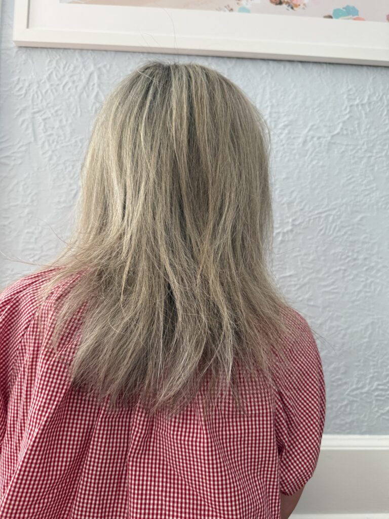 Going darker might be the answer for some, but I hated it so much. And turns out, my hair was still damaged. I don’t think it really helped me by going darker. I thought that would miracurasly solve all my issues, but it didn’t. When I would have meetings at work, I would stare at myself on the screen in a teams call and I just looked so pale and like I had big, dark bags under my eyes. And to top if off, I didn’t want shorter hair. I hated that time so much because my hair is everything to me and I really did not like the color or cut.